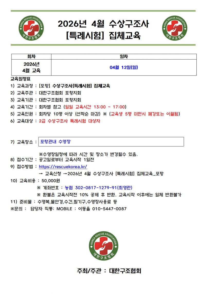 2026년 4월 수상구조사 [특례시험] 집체교육_포항
