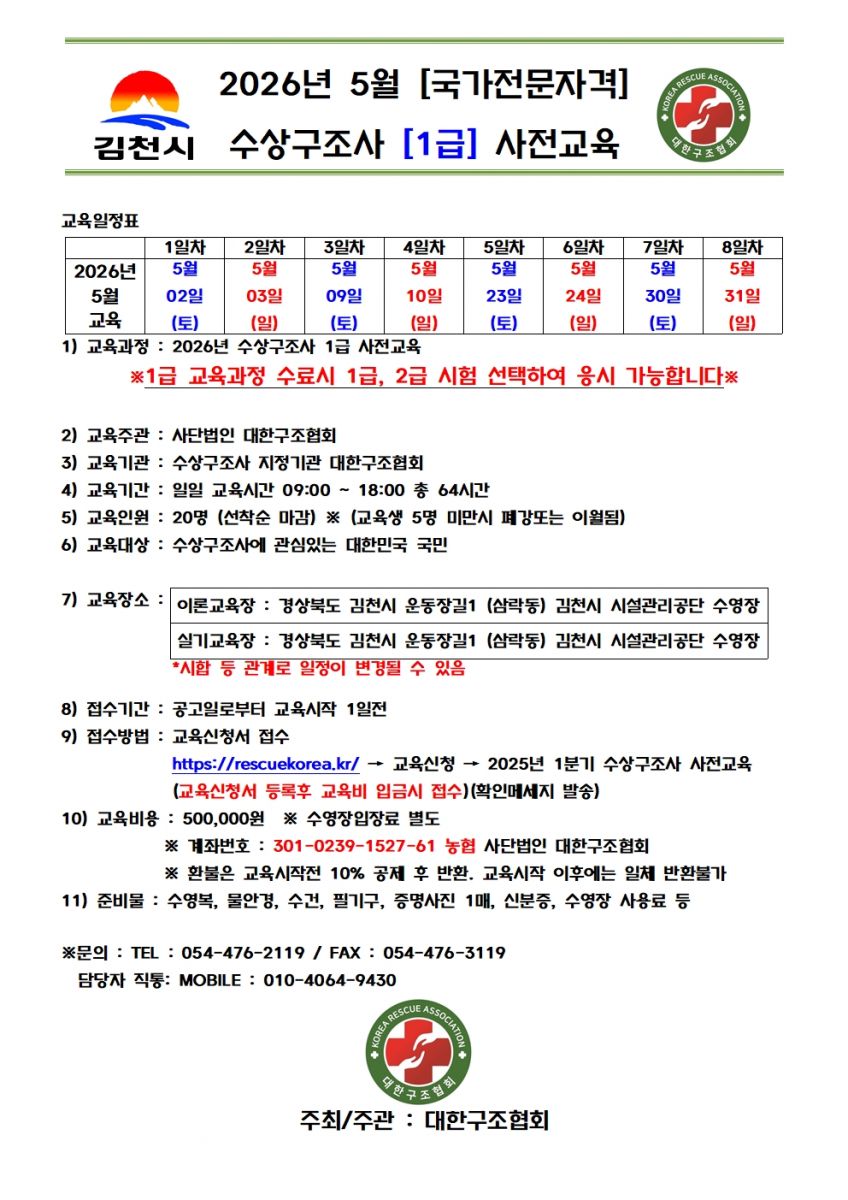 2026년 5월 수상구조사 1급 사전교육_경북김천