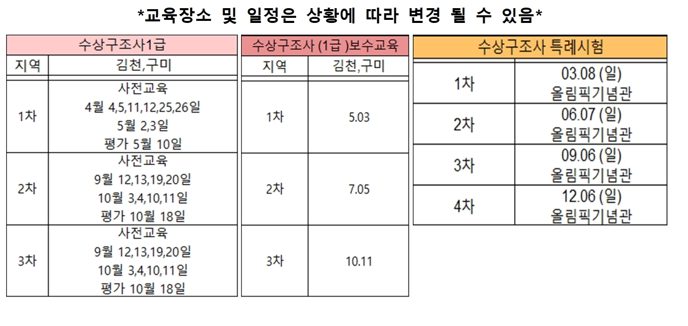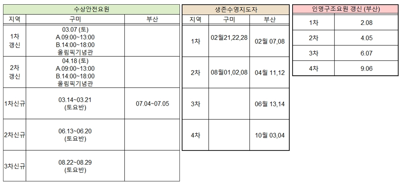 2025년 거제시 해수욕장 인명구조요원 양성교육 일정표