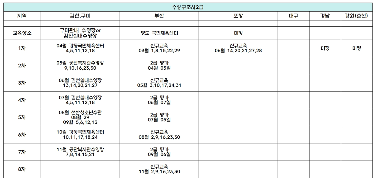 기타 2026년 3월29일 2급수상구조사 특례시험 집체교육