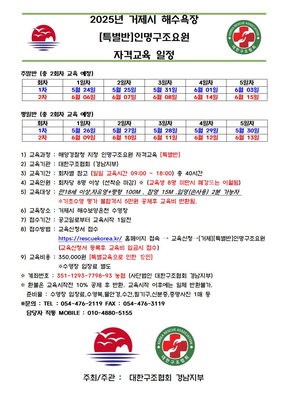 인명구조요원 [폐강] [김천,구미] 2025년 4월 인명구조요원 [신규] 자격교육