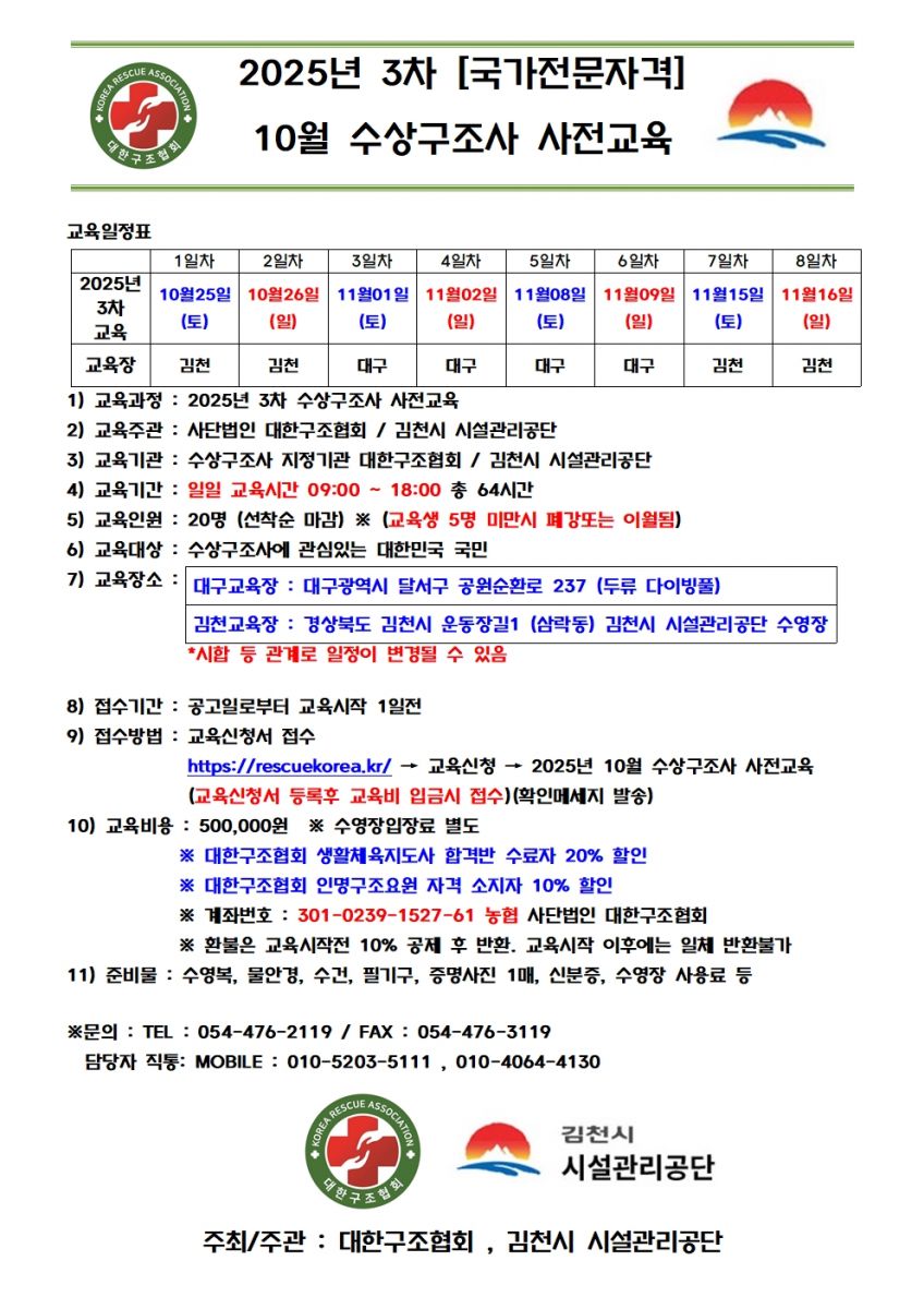 [폐강] [여수시도시관리공단] 25년 11월 수상안전요원 자격교육