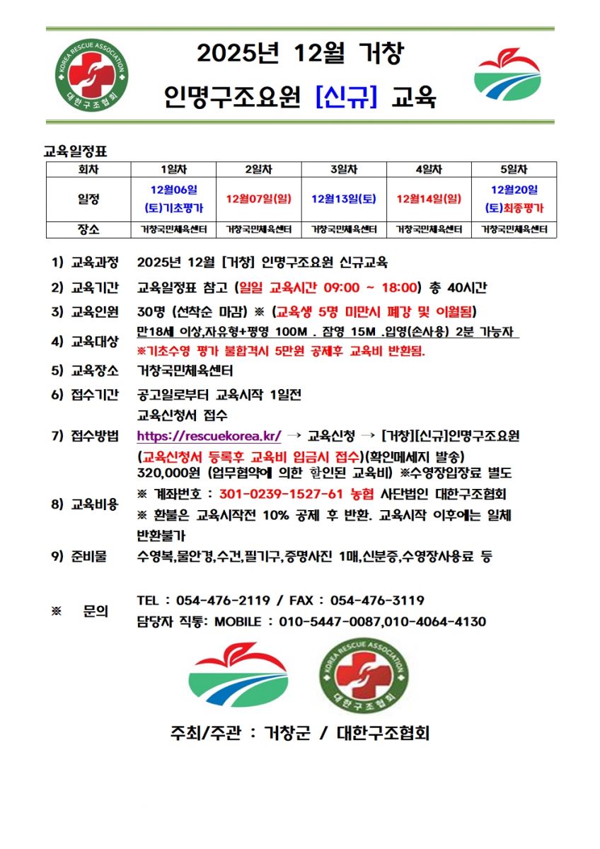 [거창]2025년 12월 인명구조요원 자격교육