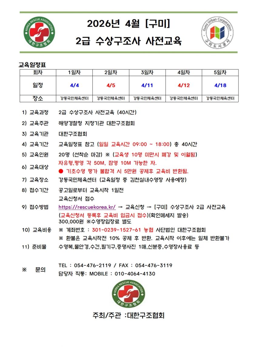 2026년 4월 [구미] 2급 수상구조사 사전교육