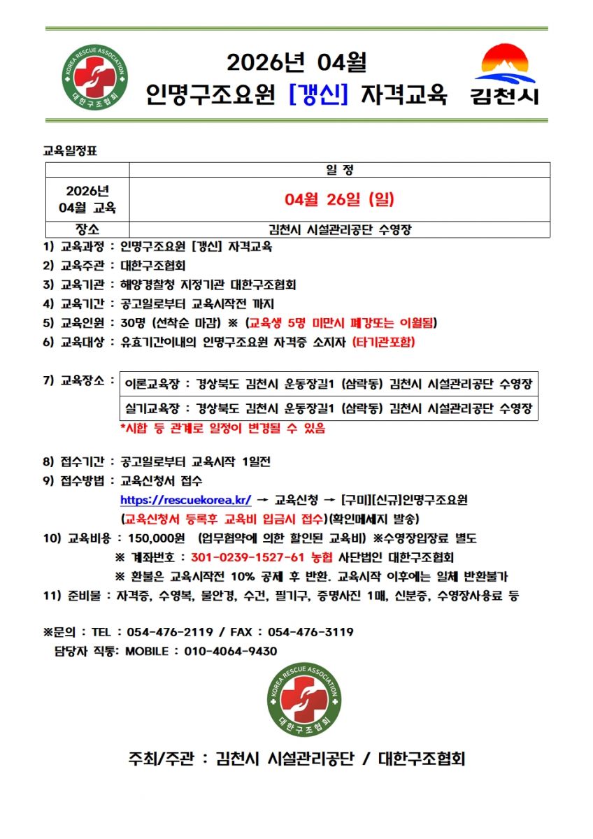 2026년 04월 인명구조요원 [갱신] 자격교육