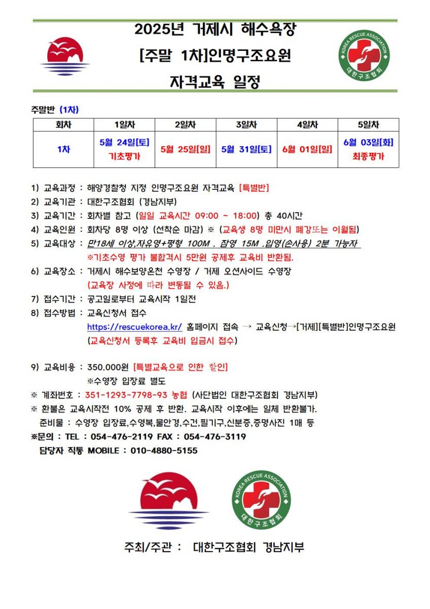 [거제][특별교육]2025년 해수욕장 주말반 1차 인명구조요원