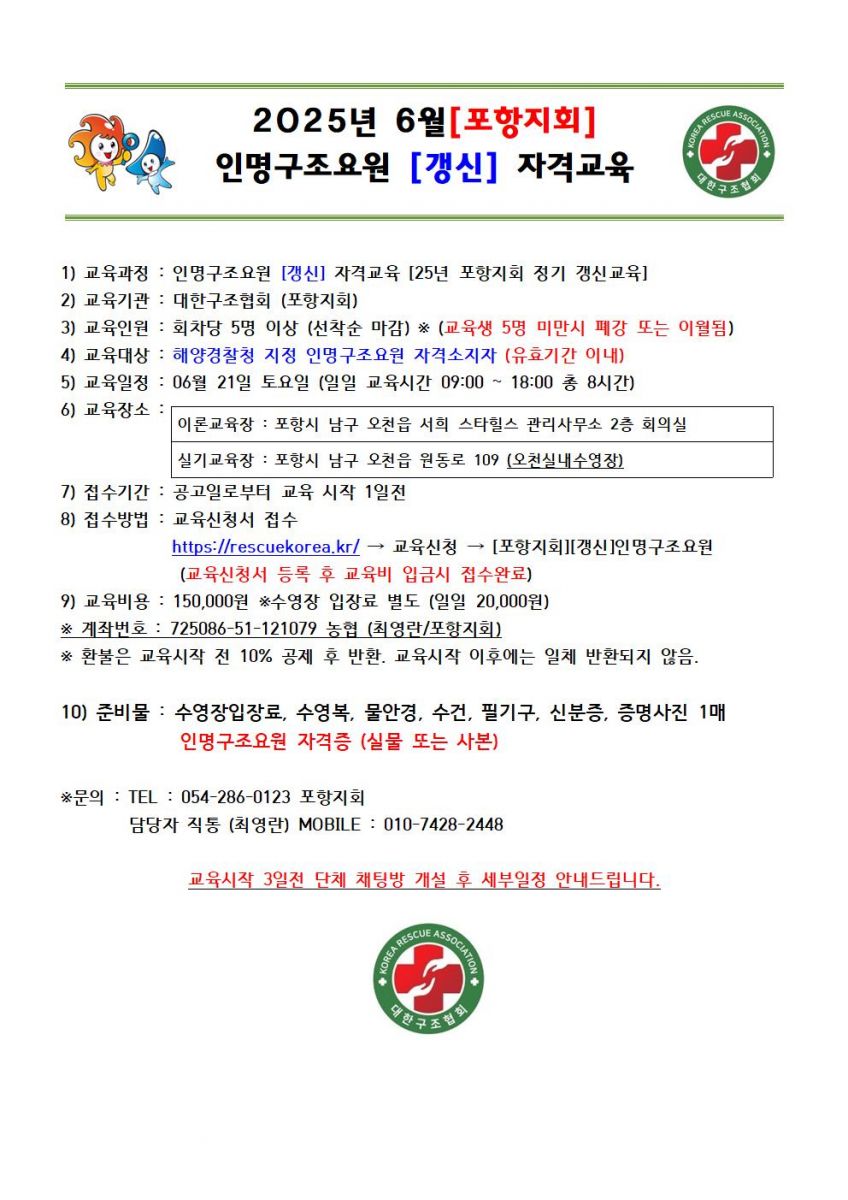 [포항] 6월 인명구조요원 [갱신] 자격교육