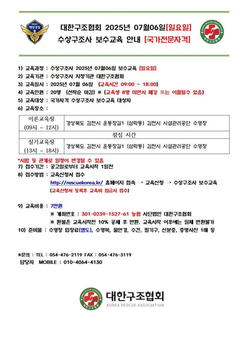 [폐강][경북] 2025년 7월 수상구조사 보수교육