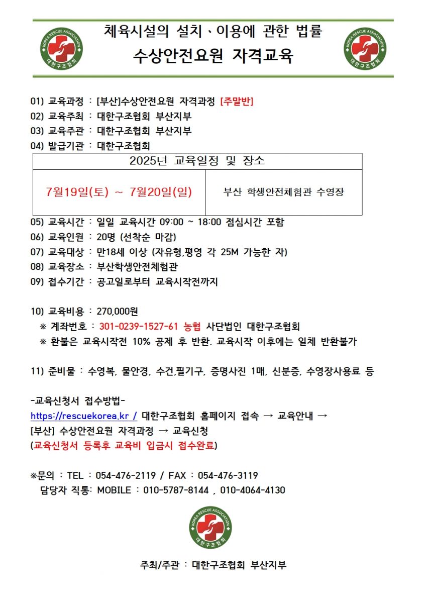 [부산] 2025년 7월 수상안전요원 자격교육