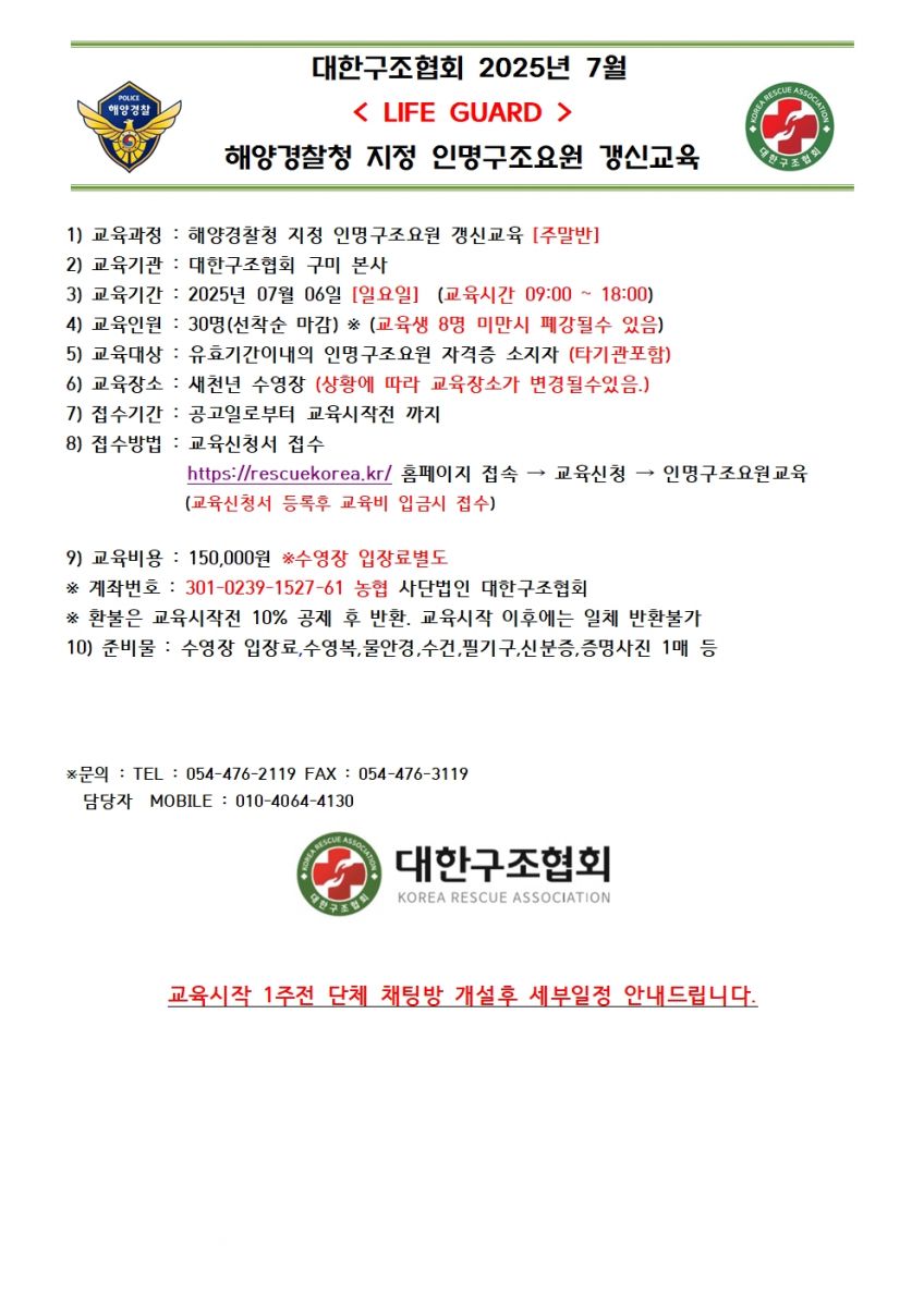 [부산] 2025년 7월 수상안전요원 자격교육